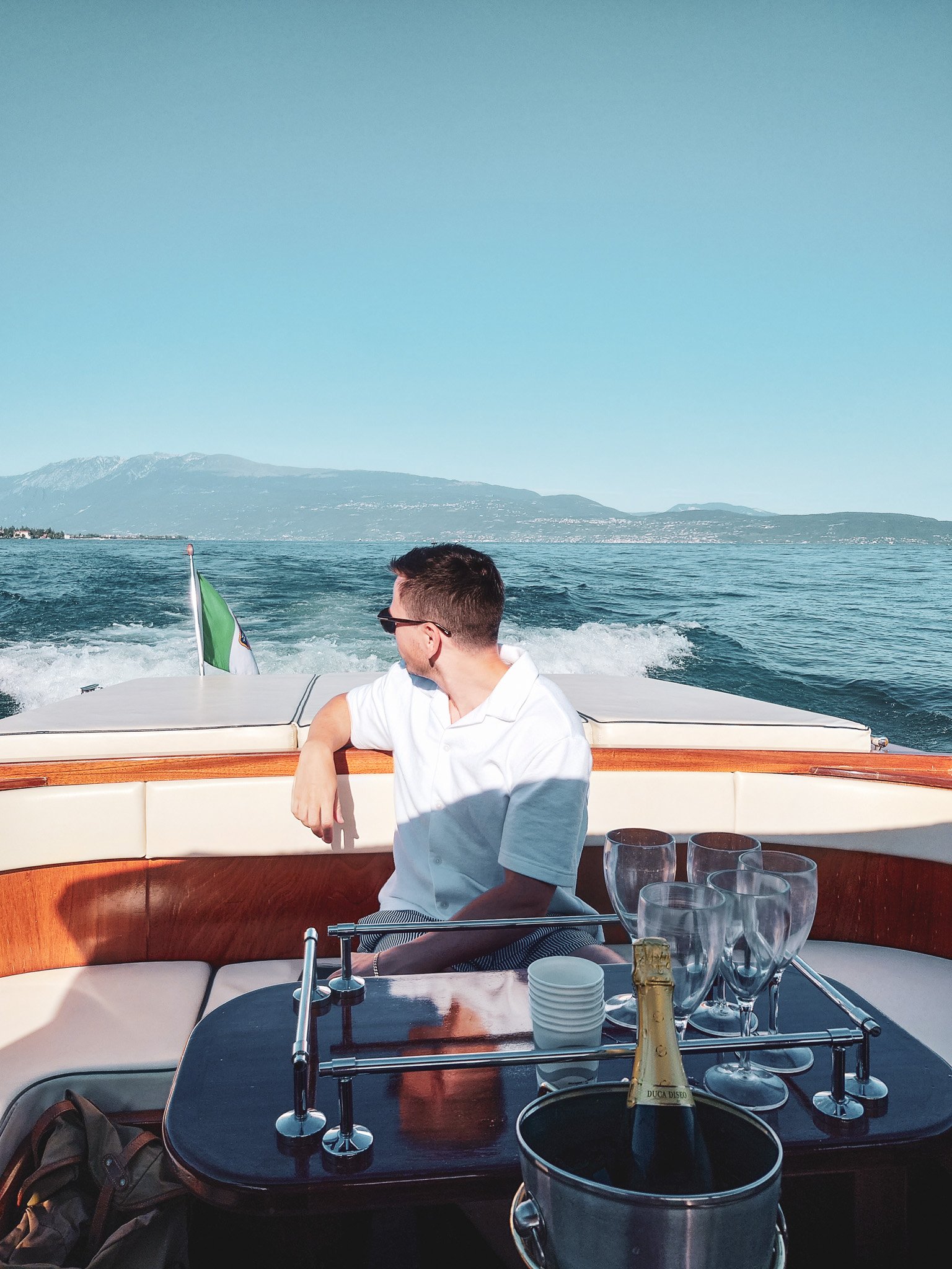 We decided to rent a boat for the afternoon and planned a little surprise for my sister and her family. We picked them up at the dock with a few bottles of Franciacorta ready to go. We spent a few hours drifting on the lake, enjoying the sun and the bubbles.